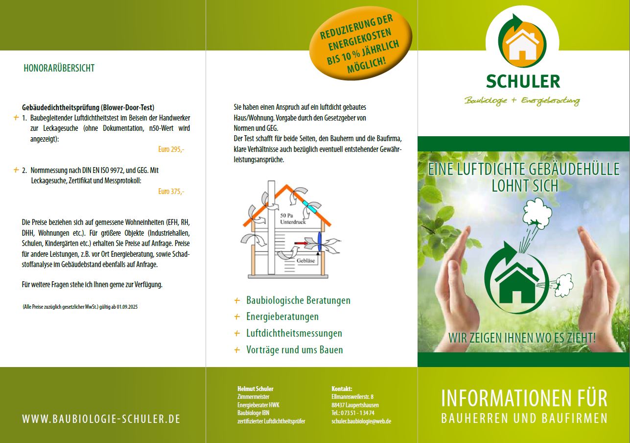 Nur wenn die Hülle ihres Objektes optimal dicht ist, haben Sie Gewissheit, dass Sie und ihre Angehörigen sich in ihren vier Wänden sicher, gesund und behaglich fühlen können. Eine BlowerDoor-Messung gibt ihnen darüber zuverlässig Auskunft.